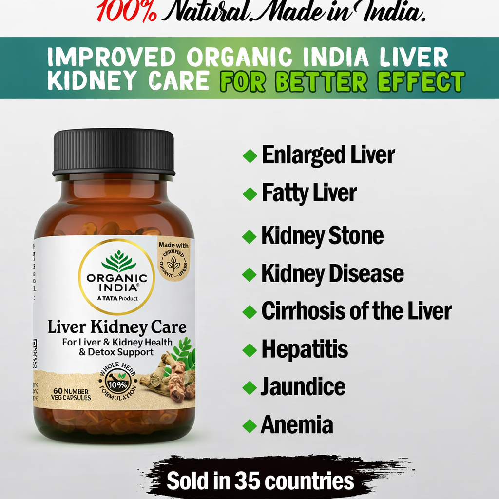 Organic India Liver-Kidney care goes into your body and flushes any impure/dirty particles in the liver and kidney — as well as helps in mitigating any pains in the entire human body caused by liver or kidney problems.